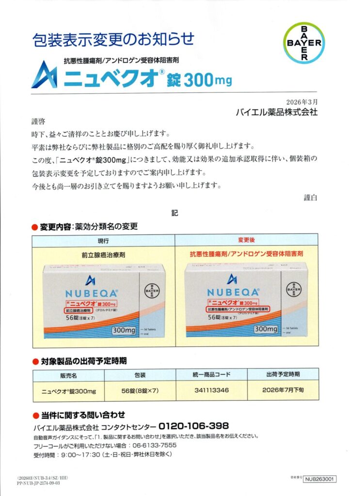 ダロルタミド(ニュベクオ)は、2026年3月23日に